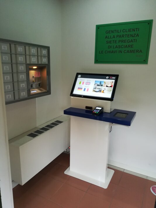 Il sistema IANITOR consente di snellire e automatizzare le operazioni di ingresso e uscita dei clienti, sollevando l'albergatore da una serie di attività quotidiane: accettazione, acquisizione dei documenti, selezione caratteristiche del soggiorno, erogazione della chiave elettronica, pagamento. Come richiede la normativa italiana, inoltre, permette di verificare la corretta identità delle persone in soggiorno.