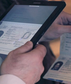 L'addetto alla reception richiede il documento all'ospite e avvia subito il processo di scansione con un tablet utilizzando l'APP.